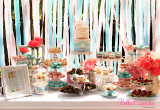 Quero que a mesa do bolo e doces fique mais ou menos assim: